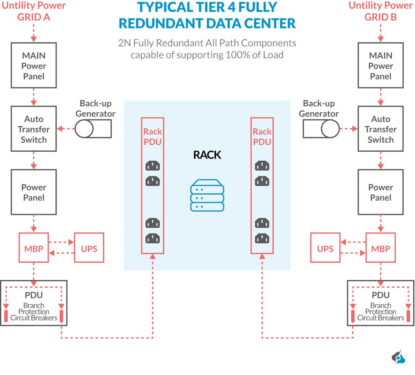 - Full Maintainability: The highest tier data center maintenance on any system or path occurs without impacting operations.