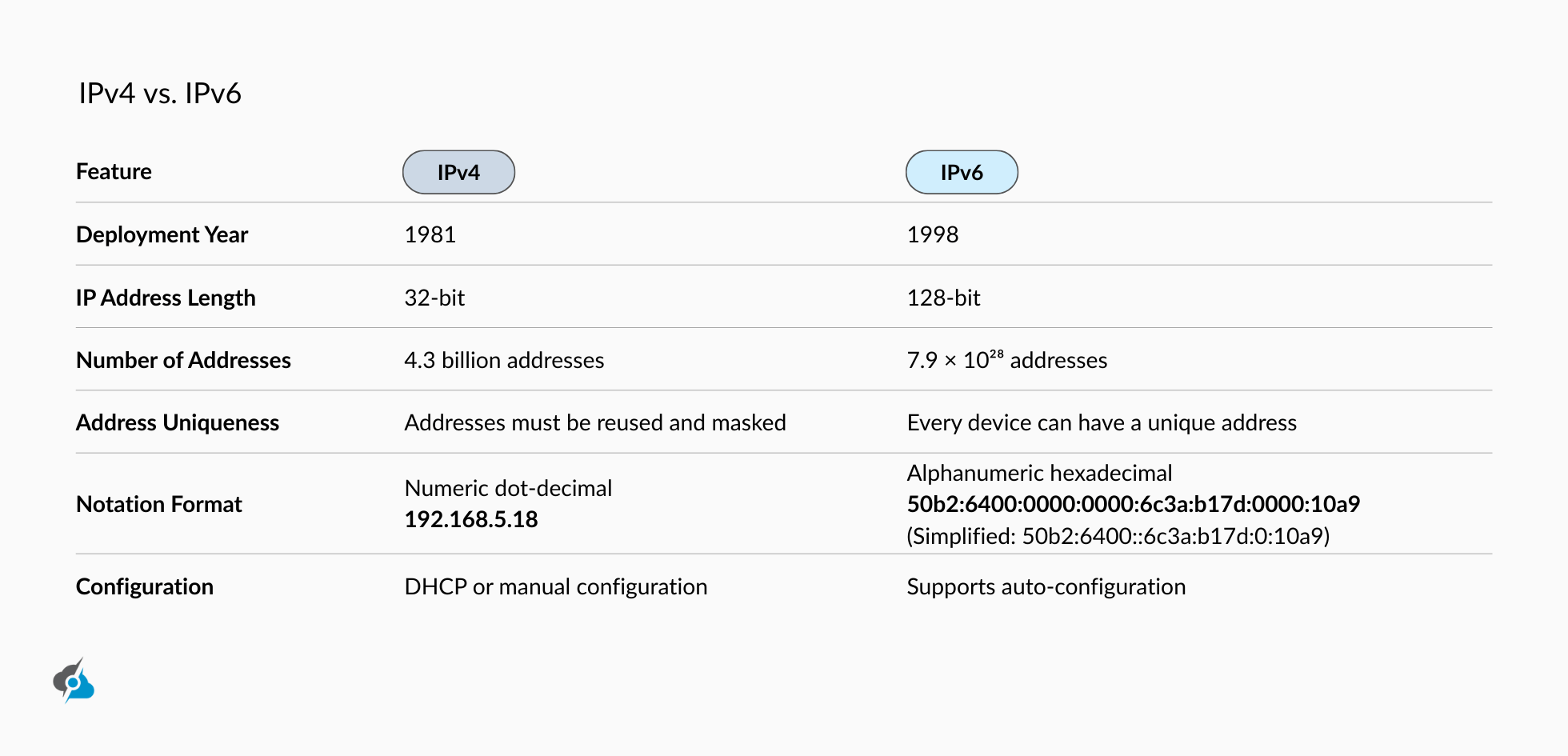 | Comparison | IPv4 | IPv6 |